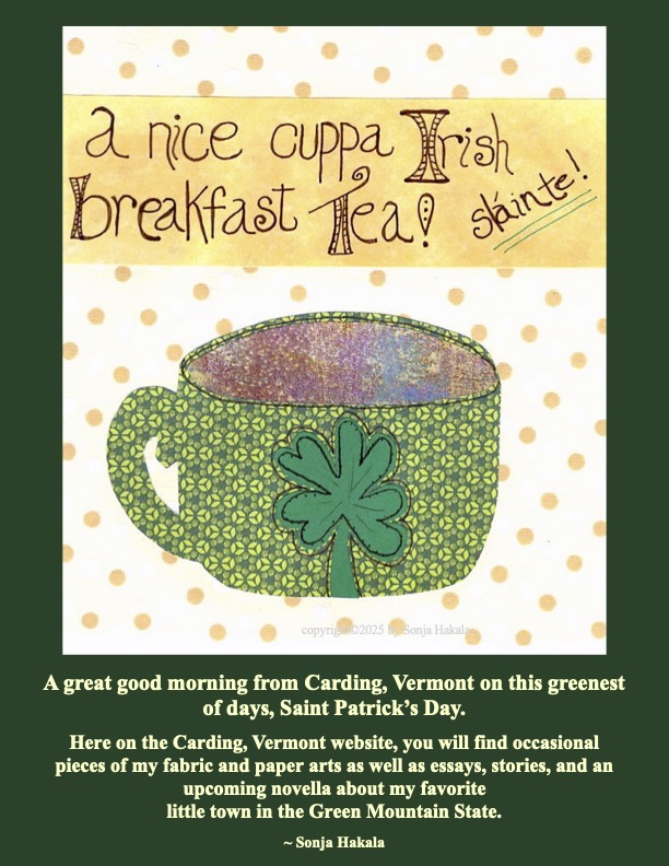 clearly it's Carding Vermont, Relentlessly Cheerful Art Sláinte! Image March 17, 2025 Sonja Hakala Leave a comment Discover more from Sonja Hakala Subscribe to get the latest posts sent to your email. Type your email… Subscribe Share this: Click to share on X (Opens in new window) X Click to share on Facebook (Opens in new window) Facebook Related